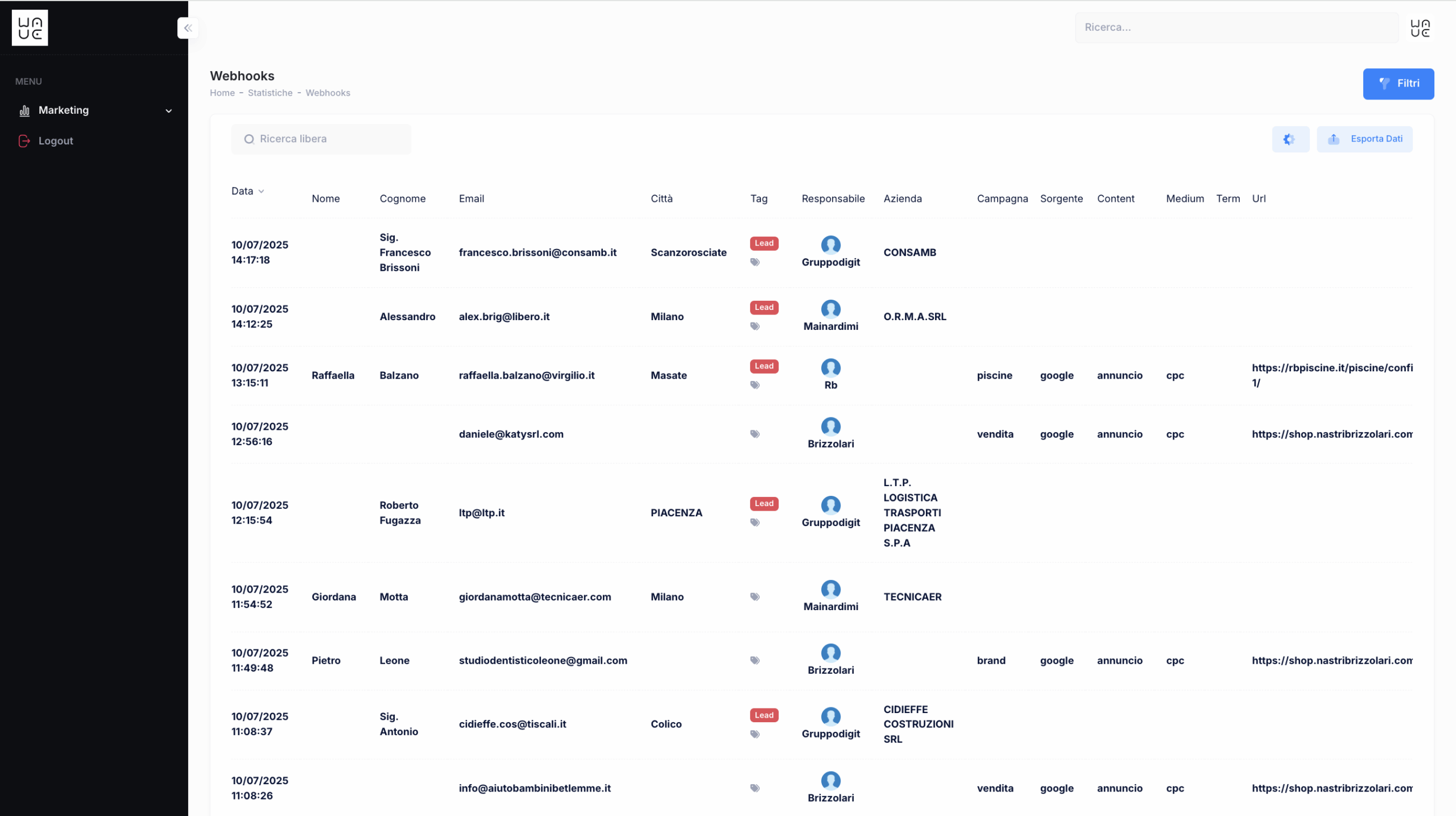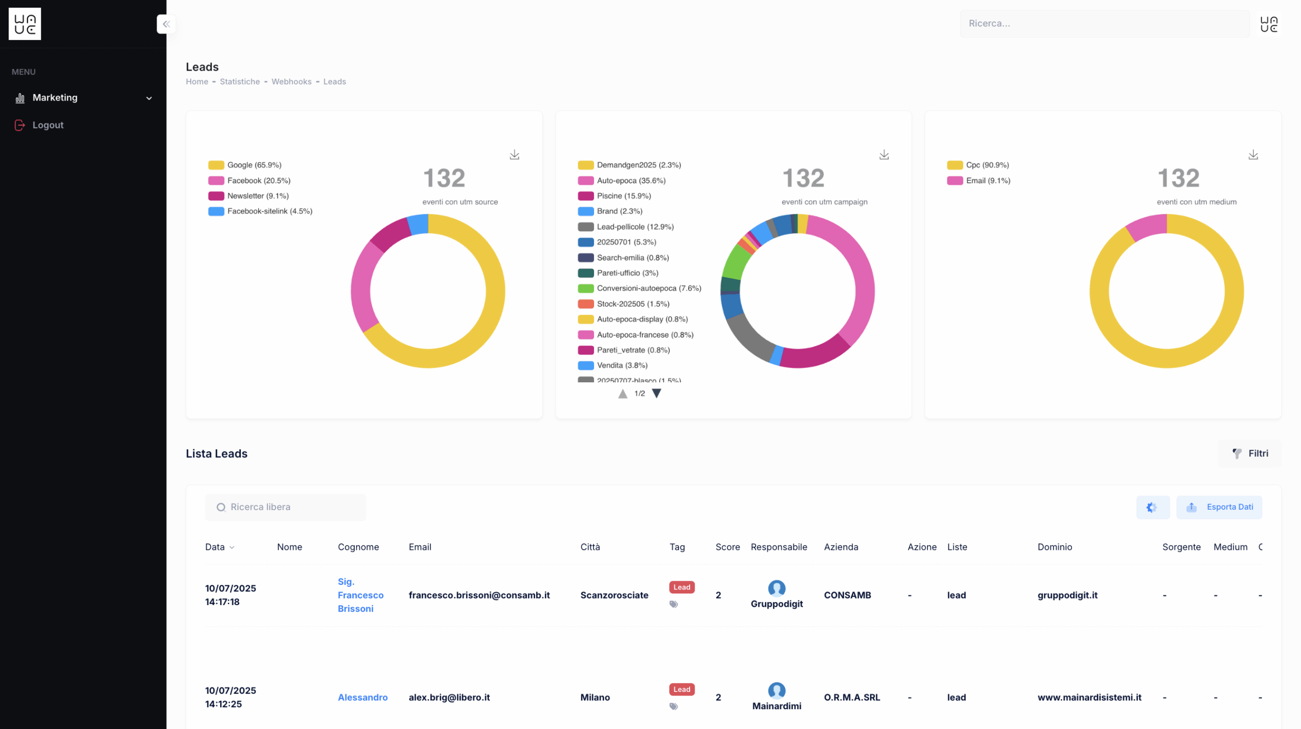 Visualizza report mensili con opportunità generate, canali performanti, % di conversione. Perfetto per prendere il controllo dei dati delle campagne marketing e leggerli per prendere decisioni operative migliori, sia che tu abbia il marketing interno o delegato a un’agenzia esterna.