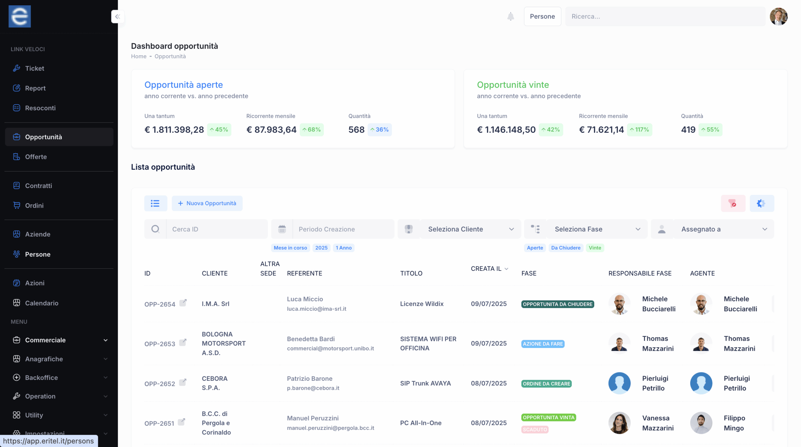 Dove si trovano, da quale campagna provengono, cosa hanno fatto. Il sistema assegna in automatico ogni contatto al commerciale corretto e ne tiene traccia in cronologia